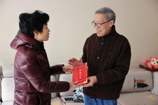 每到一处,校领导与老干部们促膝交谈,细致入微的询问他们的身体健康和家庭生活情况,对他们长期以来对学校发展的关心和支持表示衷心感谢!校领导为老干部们送上慰问信,并致以新春祝福。